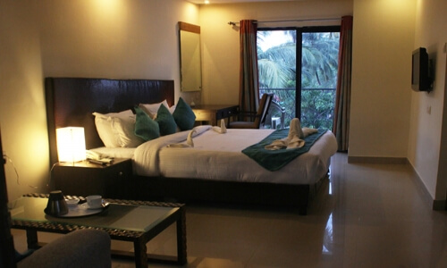 Nitya Resort, A Boutique resort has its own traditional look located on the prime stretch of main Calangute - Candolim Road, Naikavaddo, Calangute, Bardez Goa just 500 meters from renowned Golden Sands of Calangute beach. Come Experience the true essence ofGoa and feel at home at our 24 spacious and beautifully decorated & Air-Conditioned Rooms equipped with mini bar, Telephone, digital safe, ensuper deluxe bath shower & Television etc. Our aim is to provide unlimited leisure with unparalleled delight.