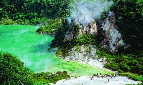 Travel south to arrive at Waitomo for a guided tour of the world famous Waitomo Glowworm Caves. Continue over the Mamaku Ranges to reach the ‘Thermal City’ of Rotorua.(B)